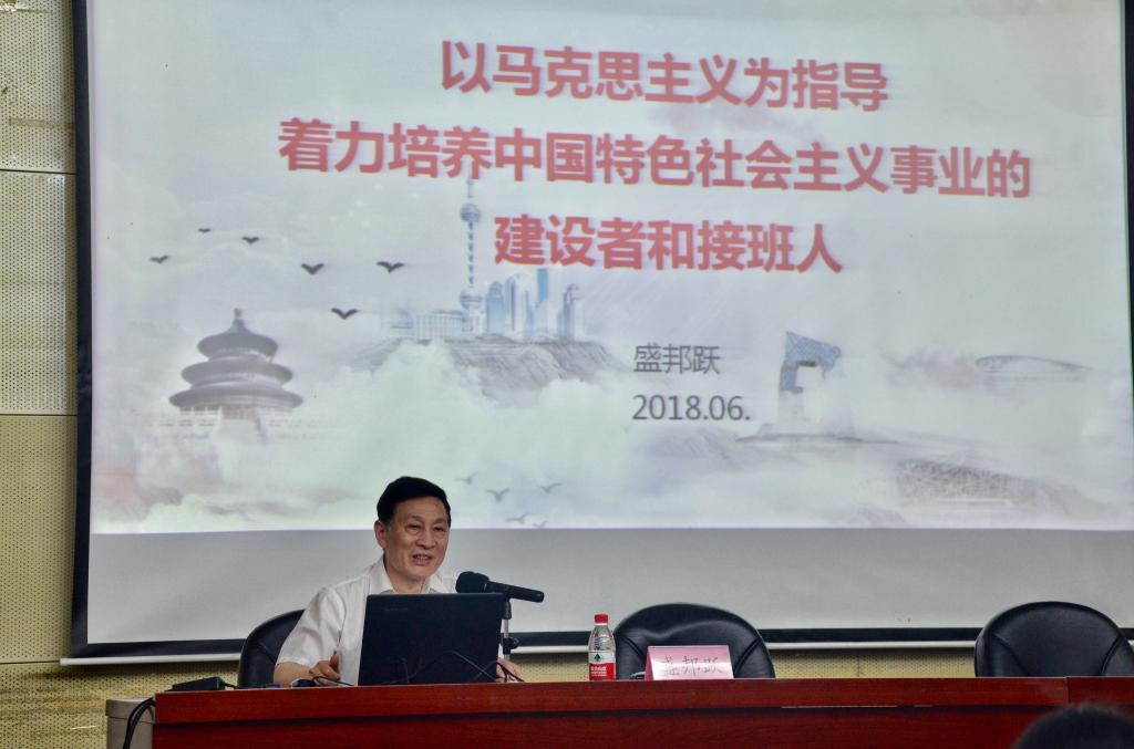 盛邦跃从马克思的生平、深入解读重要讲话、马克思主义中国化和马克思的影响力等四个方面进行了讲解。他首先简要介绍了马克思的生平,高度评价了马克思的一生是胸怀崇高理想、为人类解放不懈奋斗的一生;是不畏艰难险阻、为追求真理而勇攀思想高峰的一生;是为推翻旧世界、建立新世界而不息战斗的一生。盛邦跃讲解了马克思的三本代表作《德意志意识形态》《共产党宣言》《资本论》,指出马克思主义是科学的理论,是人民的理论,是实践的理论,是不断开展的开放的理论;认为马克思主义在深刻改变世界的同时也深刻改变了中国,马克思主义与中国革命和建设的实际相结合的过程中产生了三次伟大飞跃,并在新时代迎来了从富起来到强起来的第三次伟大飞跃。盛邦跃阐述了马克思主义中国化的几大理论成果,着重讲解了习近平新时代中国特色社会主义思想是马克思主义中国化的最新理论成果。最后,盛邦跃介绍了马克思及马克思主义对当今世界的影响力,指出学习马克思主义对解决当代问题意义重大,推动马克思主义不断发展是中国共产党人的神圣职责。