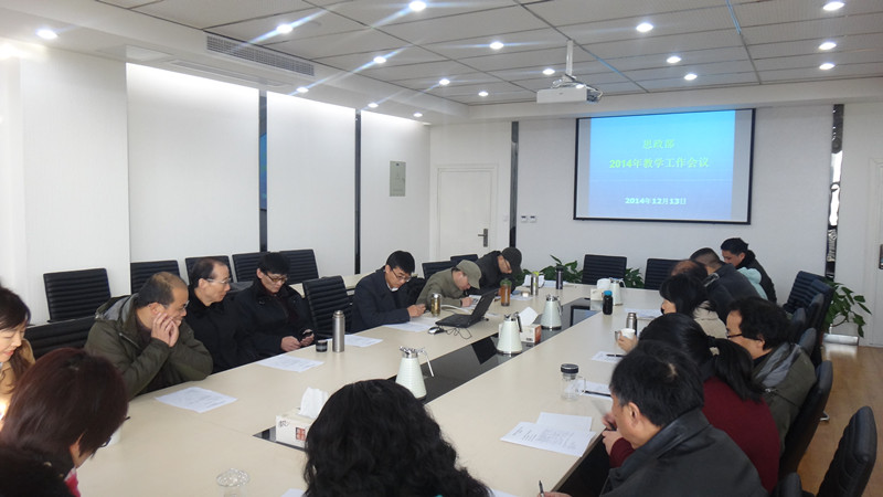 12月13日,思政部在会议室A610召开2014年教学工作会议,本次会议的主题是“加强教学研讨,提高思政课教学效果”。思政部主任、党总支书记余林媛,副主任王建光、葛笑如及全体教师参加了会议。会议由葛笑如主持。