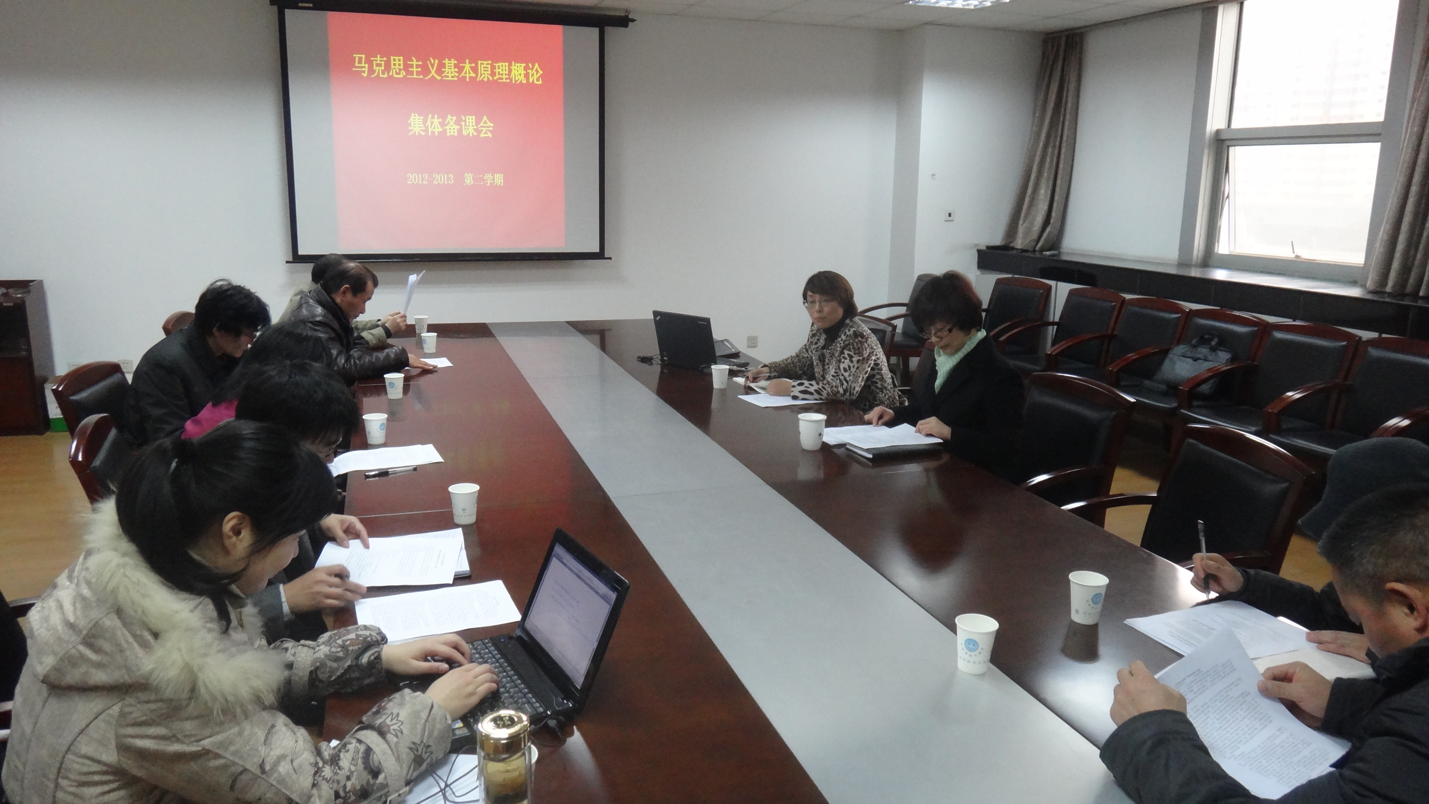 为贯彻学校以“实践·创新·质量”为主题的教学年活动精神,3月13日下午,思政部在逸夫楼6041召开“马克思主义基本原理概论”(以下简称“原理”)课程教学研讨会。该课程全体教师参加会议。会议由“马克思主义原理”教研室主任朱娅主持。思政部书记、主任余林媛莅会指导。