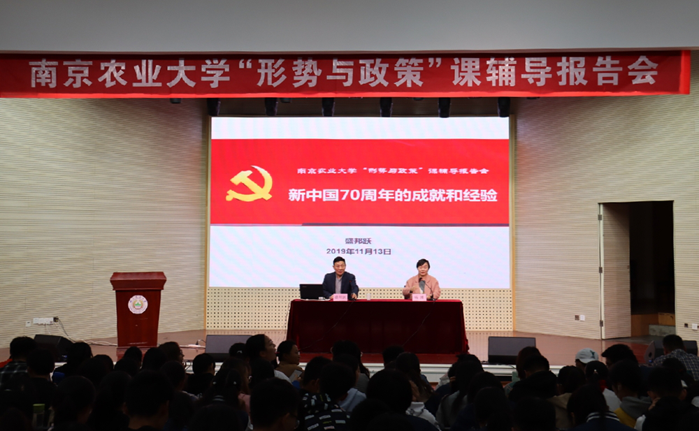 11月13日下午,我校 “形势与政策”辅导报告会在大学生活动中心报告厅举行。学校原党委副书记、纪委书记盛邦跃教授做《新中国70周年的成就和经验》专题报告,动医院、人文院、公管院、成人动漫 的近400位师生共同聆听了此次报告会。报告会由成人动漫 党总支副书记杨博主持。