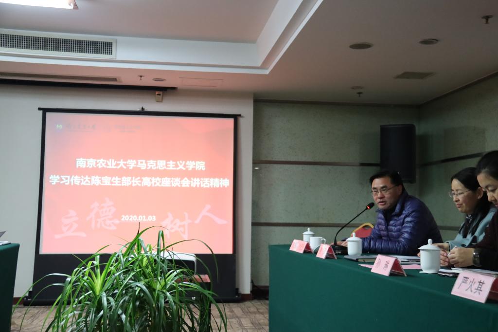 1月3日下午2点,成人动漫 在翰院宾馆六楼会议室开展学习传达陈宝生部长高校座谈会讲话精神会议,成人动漫 人文社科处副处长卢勇、南京师范大学哲学系主任曹孟勤应邀出席此次会议。会议由成人动漫 党总支书记、院长付坚强主持。