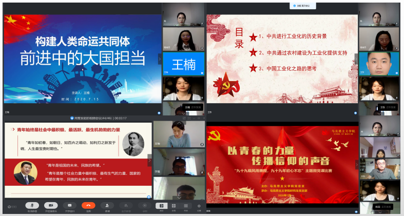 使命呼唤担当,初心引领前行。7月15日下午,成人动漫 “九十九载风雨兼程,九十九年初心不忘”微党课大赛暨信仰公开课学生讲师选拔赛在钉钉平台顺利举行。校党委宣传部、党委教师工作部副部长陈洁,校团委副书记朱媛媛,成人动漫 党总支副书记杨博,成人动漫 陈蕊老师担任比赛评委。校团委姚敏磊老师、成人动漫 辅导员巩欢老师出席活动,成人动漫 全体研究生党员、入党积极分子集结云端观赛。