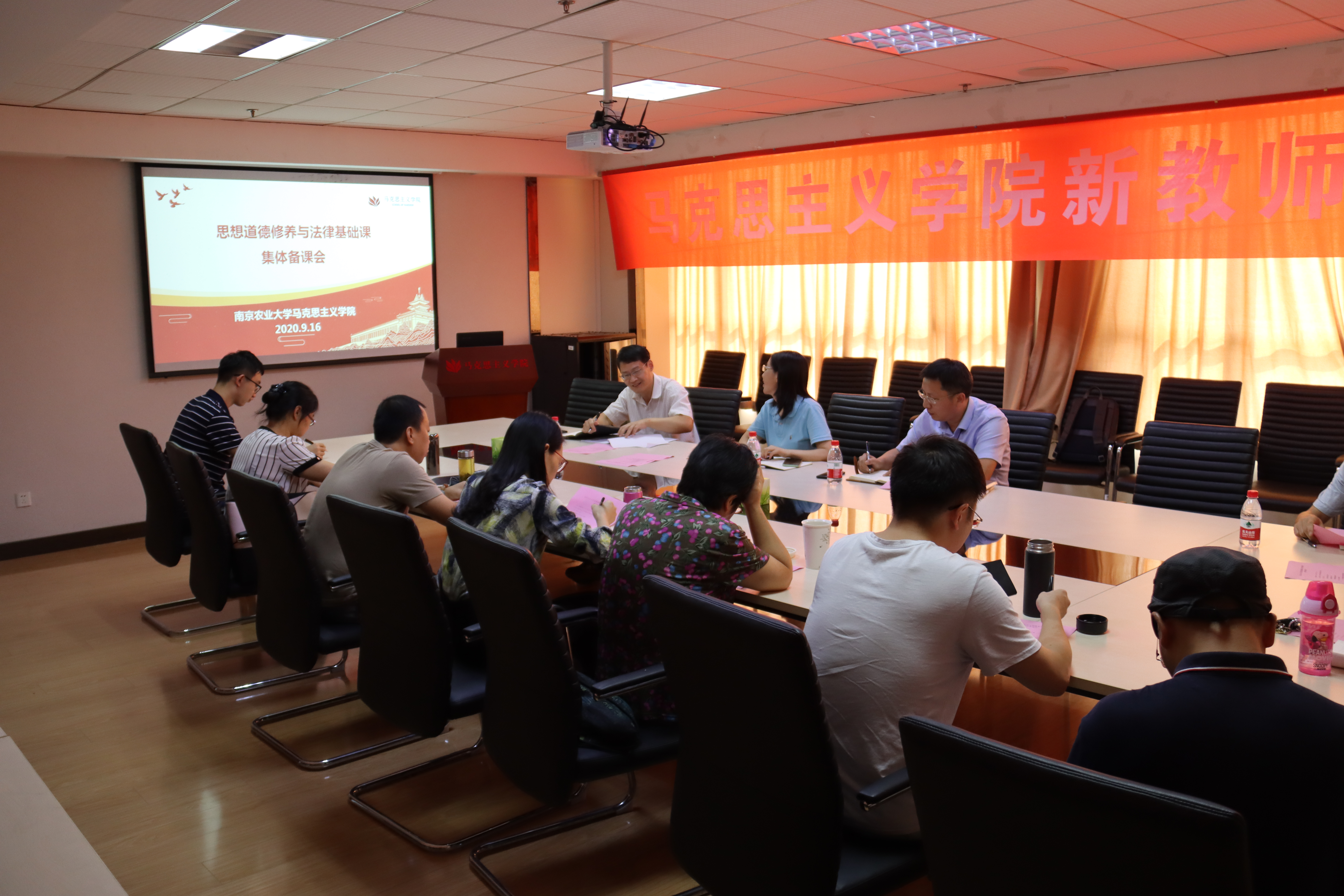 为贯彻落实教育部《新时代高校思想政治理论课教学工作基本要求》,扎实推进《思想道德修养与法律基础》课程教学工作顺利开展,成人动漫 于9月16日在翰苑辅楼303会议室召开了2020年秋季学期《思想道德修养与法律基础》集体备课会。院党总支副书记屈勇、副院长姜萍以及《基础》课全体授课教师参加了会议,备课会由思想道德修养与法律基础教研室主任张金明主持。