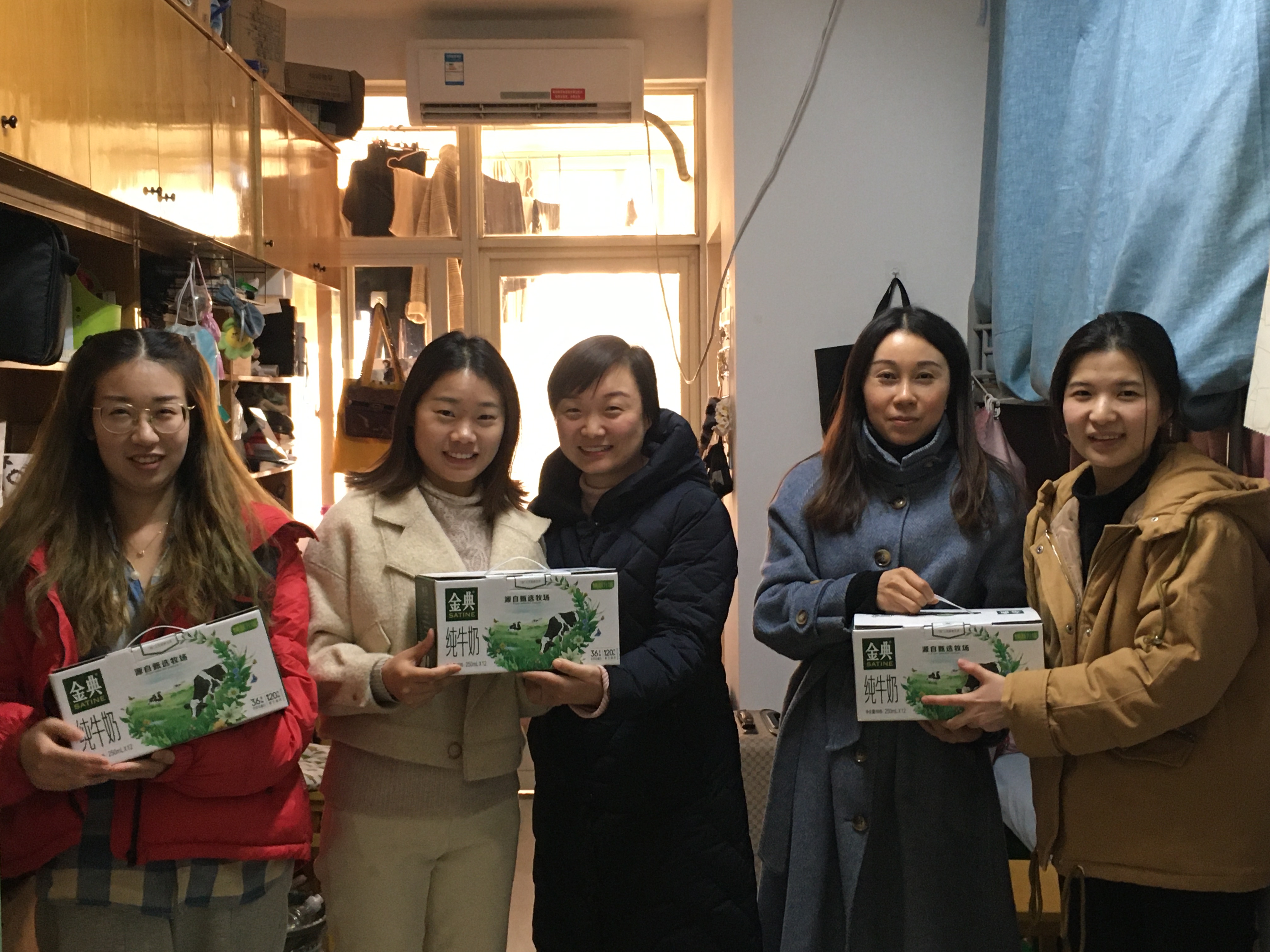 两位老师代表学院来到毕业生宿舍,为大家送上“牛奶礼包”与就业关怀。杨博询问每位毕业生的就业进度,考公与考博复习情况,鼓励大家坚定信念、劳逸结合、努力克服困难。她告诉大家,如果在求职或考试路上遇到困难,可以与学院联系,学院会尽可能为学生提供帮助。两位老师就学生提到的就业、学业、生活相关问题一一作了解答。