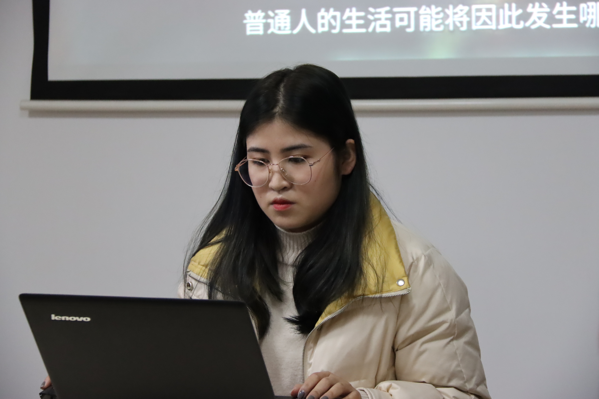 活动伊始,陈龙景以2021年作为“十四五”开局之年的重要地位为切入点,为大家带来了2021年全国两会的看点。首先,她以全国两会会议相关视频资料为导入,介绍了全国两会会议主要内容及进程;接着,她从创新、经济、民生、疫情防控等方面讲解了全国两会的七大看点;最后,她将两会六大关键词与专业特色相结合进行总结。