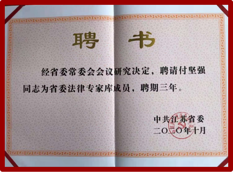 付坚强教授同时担任江苏省委法律专家库成员,为省委重大决策提供法律意见,深入开展法治建设相关调研,提供依法决策、科学决策法律咨询和服务,在法治江苏建设中贡献南农力量。