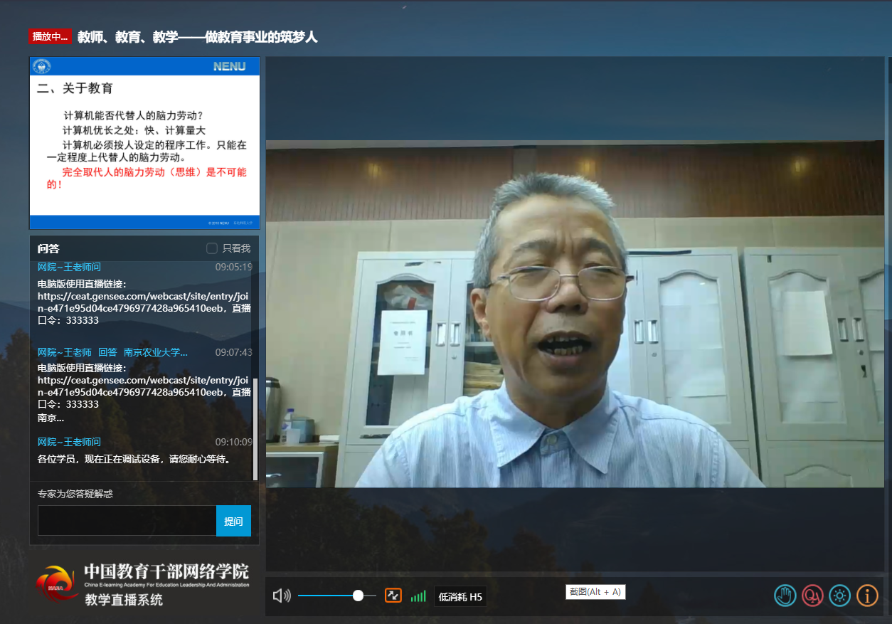 9月9日,学院党总支和各支部组织全体教师线上观看了国家教育行政学院“师德大讲堂”教师节公益直播,直播邀请了“全国教书育人楷模”高夯,讲述自身的教师经历和师德故事。