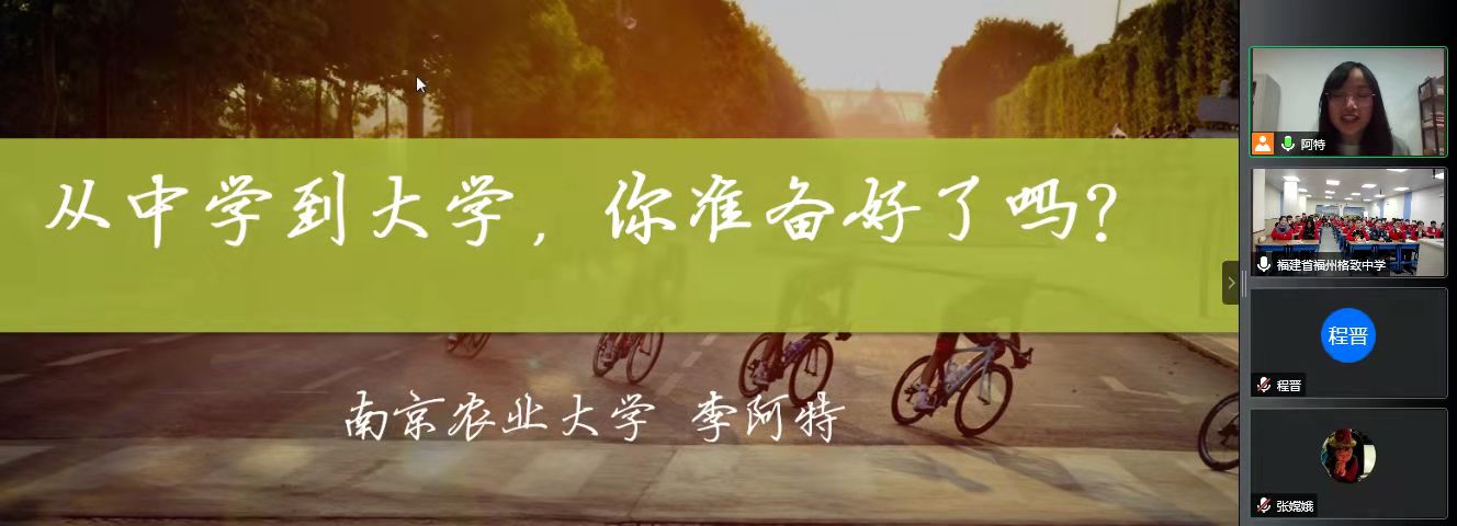 11月15日下午,成人动漫 与福建省格致中学开展共建交流,并邀请我校生命科学学院党委副书记、副教授李阿特作《从中学到大学,你准备好了吗》专题讲座。讲座由教务处李怡副主任主持,2019级高三实验班的60名优秀学生参加。