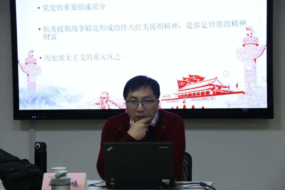 2021年11月18日上午9:00,成人动漫 在翰苑辅楼501教室举办思·正沙龙。本次沙龙以“弘扬伟大的抗美援朝精神”为主题,由成人动漫 教师邵玮楠主讲,研一、研二学生参加讲座。