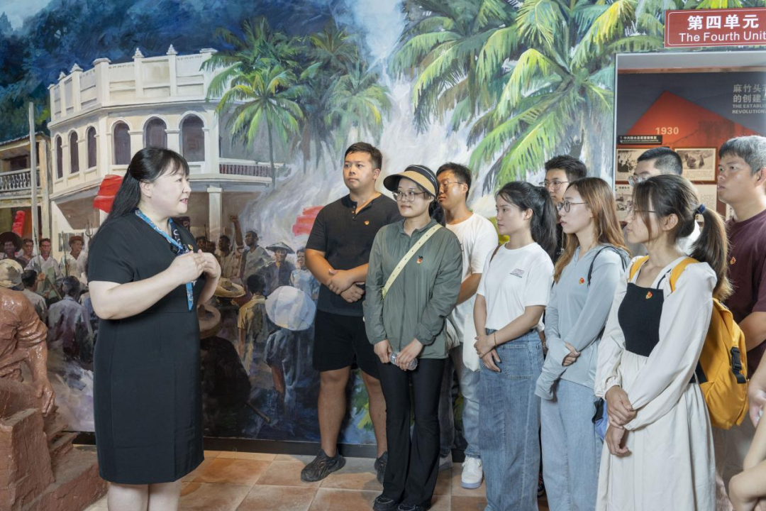 同学们在葛老师的讲解下,边走边听。程梓伦表示,透过一件件烈士的遗物、一幅幅珍贵的历史照片、一段段生动感人的故事,大家置身于陵水苏维埃革命斗争波澜壮阔的历史画卷,深刻感悟琼崖人民团结战斗的深厚友谊,直观地体会到了琼崖革命精神的内涵实质和铸牢中华民族共同体意识的重大意义。