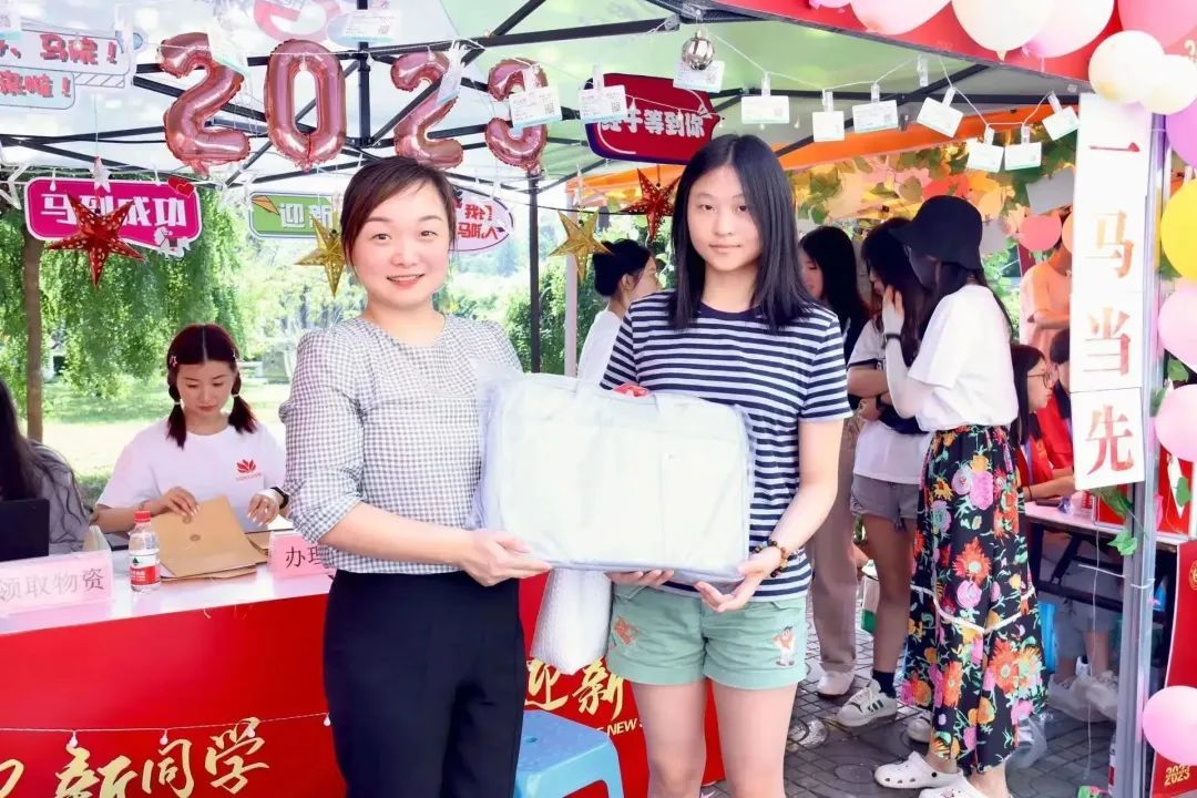 学院党委书记郑颖、院长付坚强、副书记杨博、辅导员张嫦娥、教师许丽等到现场一起迎接新生,和“小马”们进行亲切交谈,赠送学院“大礼包”,并合影留念。