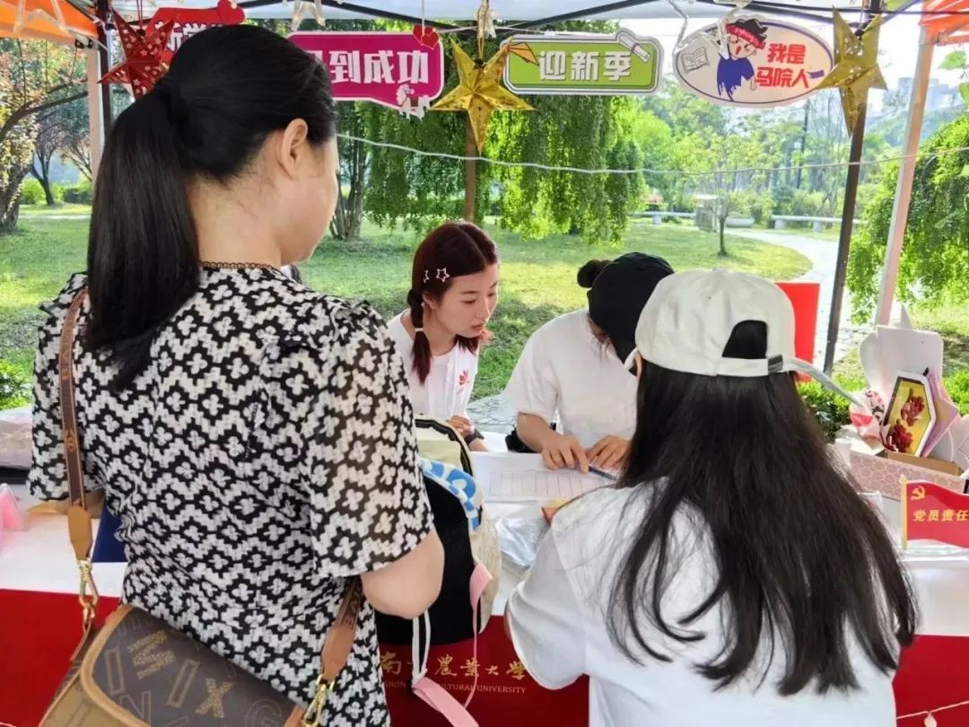 报到当天清晨,在学院迎新点,学生干部、社团工作人员早已准备就绪。现场星光点点,温馨别致,一张张从“红色初心”出发、终点站抵达“南农马院”的高铁“车票”,扫一扫二维码,能听到老师和学长学姐们的定制寄语,温情马院期待“小马”们乘风起航,一展风采!