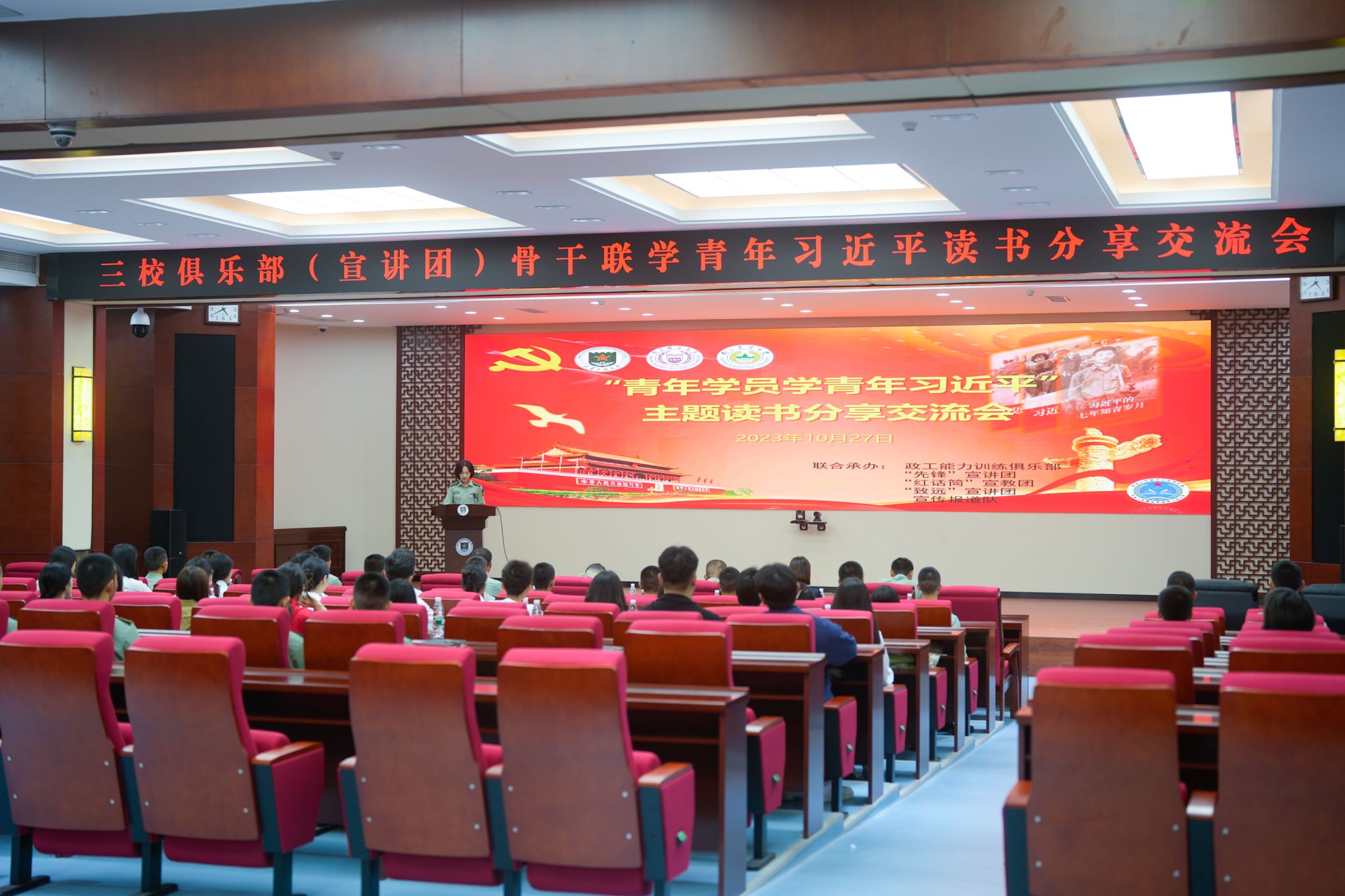 在陆军工程大学通工楼礼堂,成人动漫 “致远”宣讲团成员和研一新生、陆军工程大学政治工作能力训练俱乐部全体成员、南京理工大学成人动漫 “红话筒”宣教团成员共同参加了主题读书分享交流会。陆军工程大学政治工作能力训练俱乐部副主任戚俊辉领学了《习近平的七年知青岁月》《习近平在宁德》等书籍。