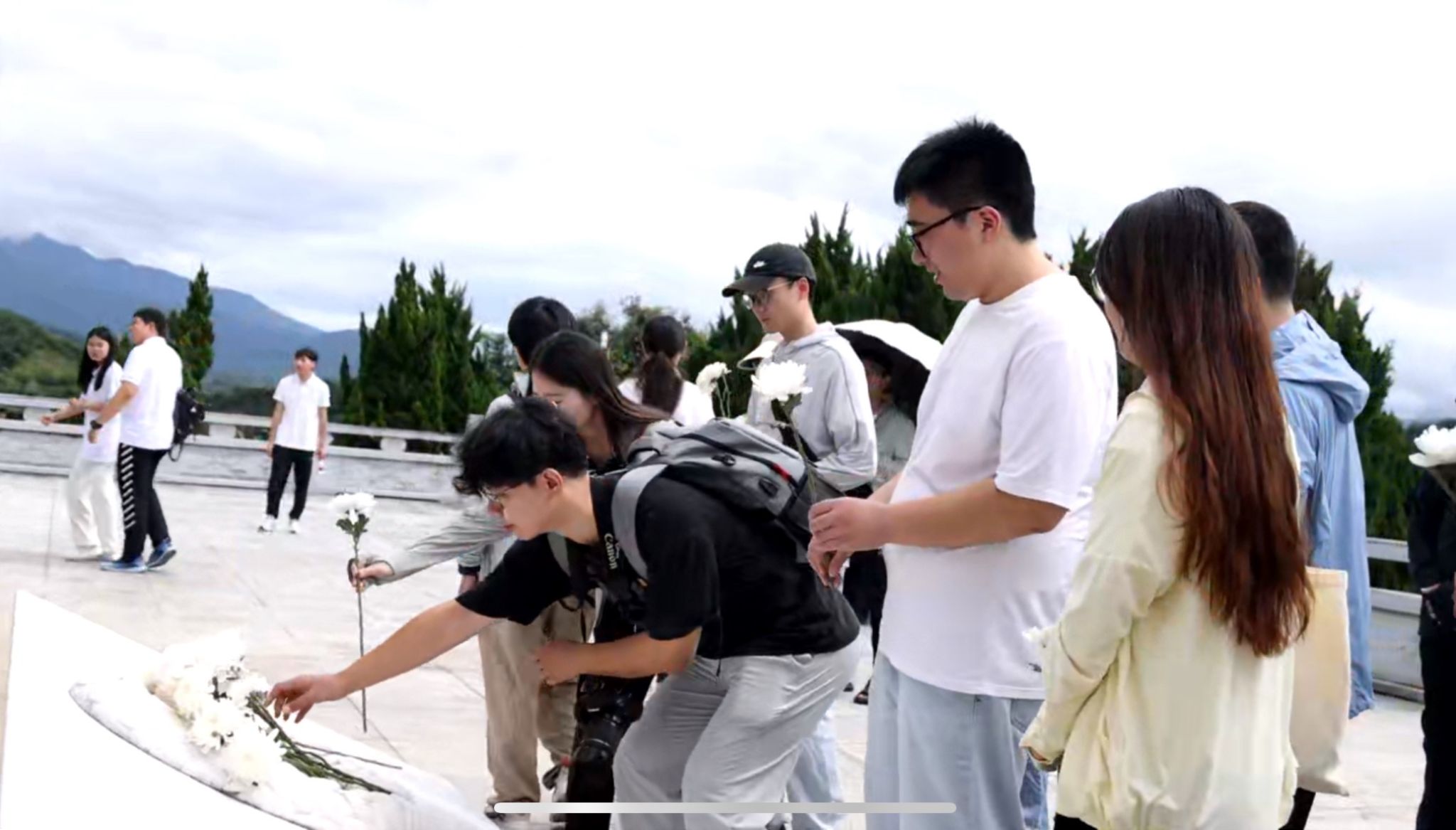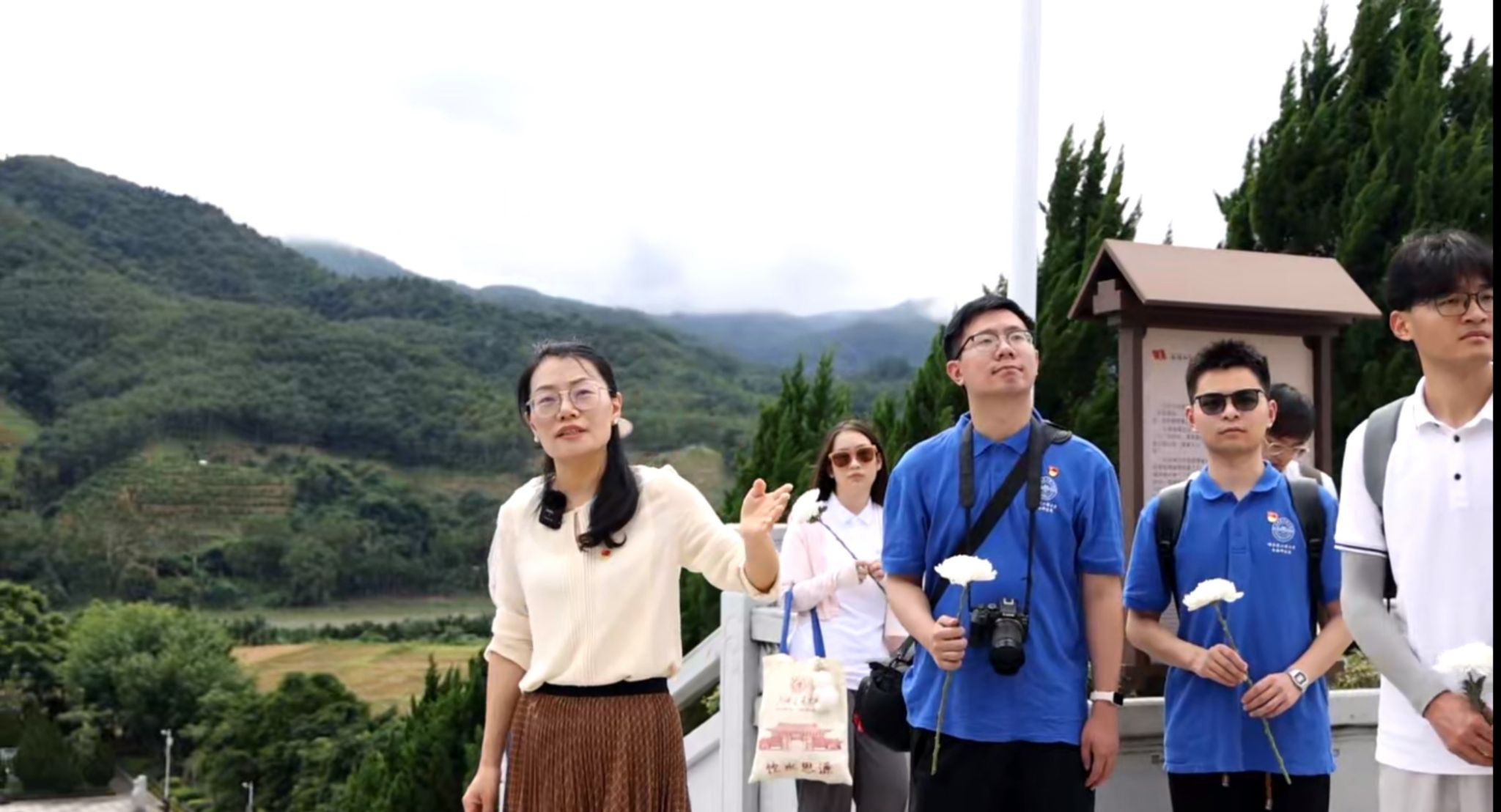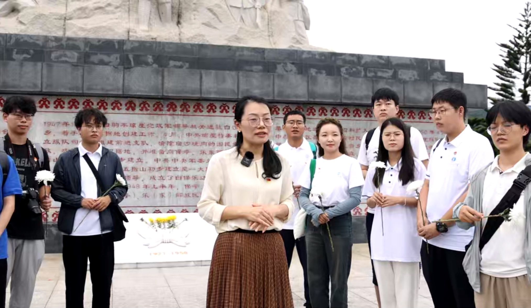 “我们前方的五指山革命根据地纪念碑是为了纪念琼崖革命的伟大胜利而建造,碑高23米,象征着琼崖革命‘二十三年红旗不倒’,纪念碑犹如一面迎风飘扬的旗帜,代表七十多年前琼崖大地上的第一面五星红旗在这里升起,也时刻提醒着人们琼崖纵队革命先烈在解放海南中做出的牺牲。”成人动漫 副教授张松在纪念碑前的英雄广场上为同学们带来了一节现场思政课,并带领师生党员、入党积极分子共同瞻仰了五指山革命烈士纪念碑,向革命先烈敬献鲜花,党员同志们重温了入党誓词。
