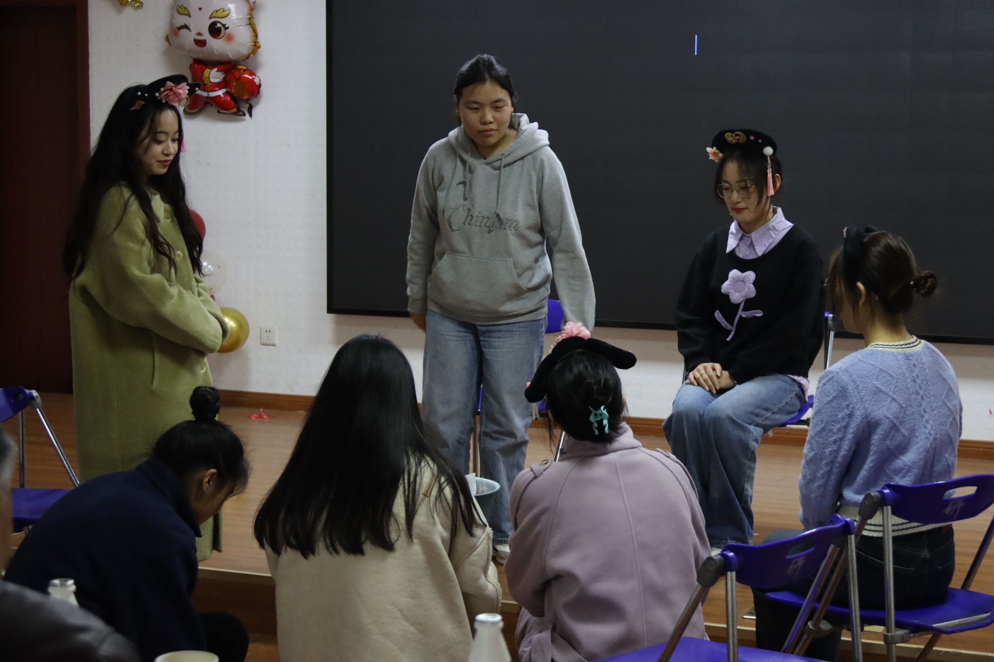 冉璐老师和陈蕊老师临场发挥,带给我们耳熟能详的歌曲《探窗》《亲爱的那不是爱情》和《套马杆的汉子》,激起了大家合唱的热情,让我们一起陶醉在美妙的音乐时光里。