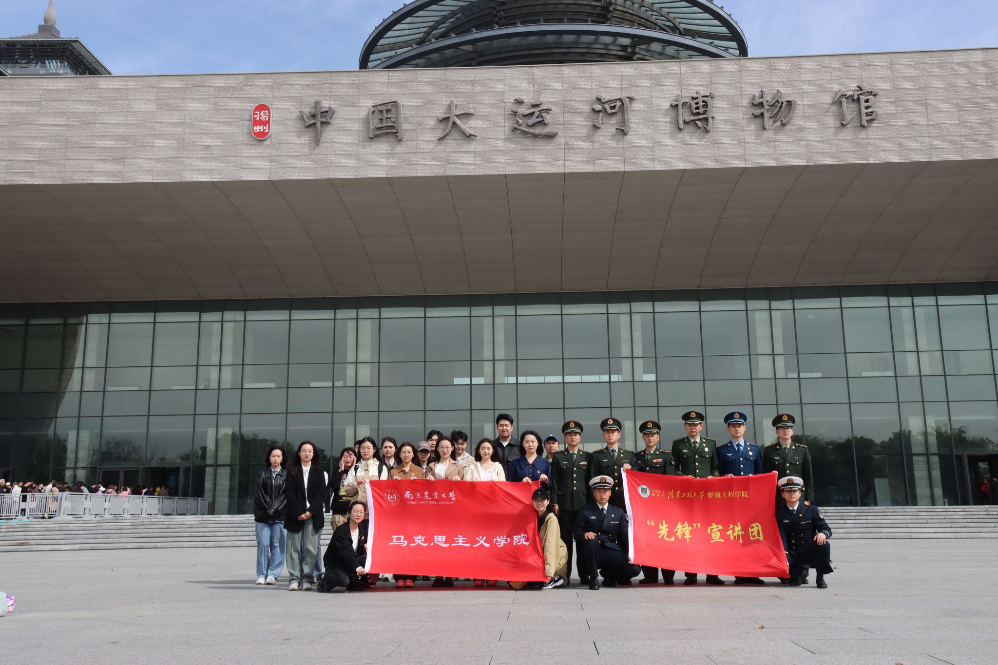 为深入学习贯彻习近平文化思想,赓续中华优秀传统文化,增强文化自觉,坚定文化自信,4月19日,成人动漫 研究生党支部联合院研究生会、“致远”宣讲团和解放军陆军工程大学宣讲团赴扬州开展主题党日活动。团队一行前往中国大运河博物馆,通过实地参观学习、沉浸式体验和“博物馆里的思政课”等形式感受运河文化的魅力,从中汲取奋斗力量。