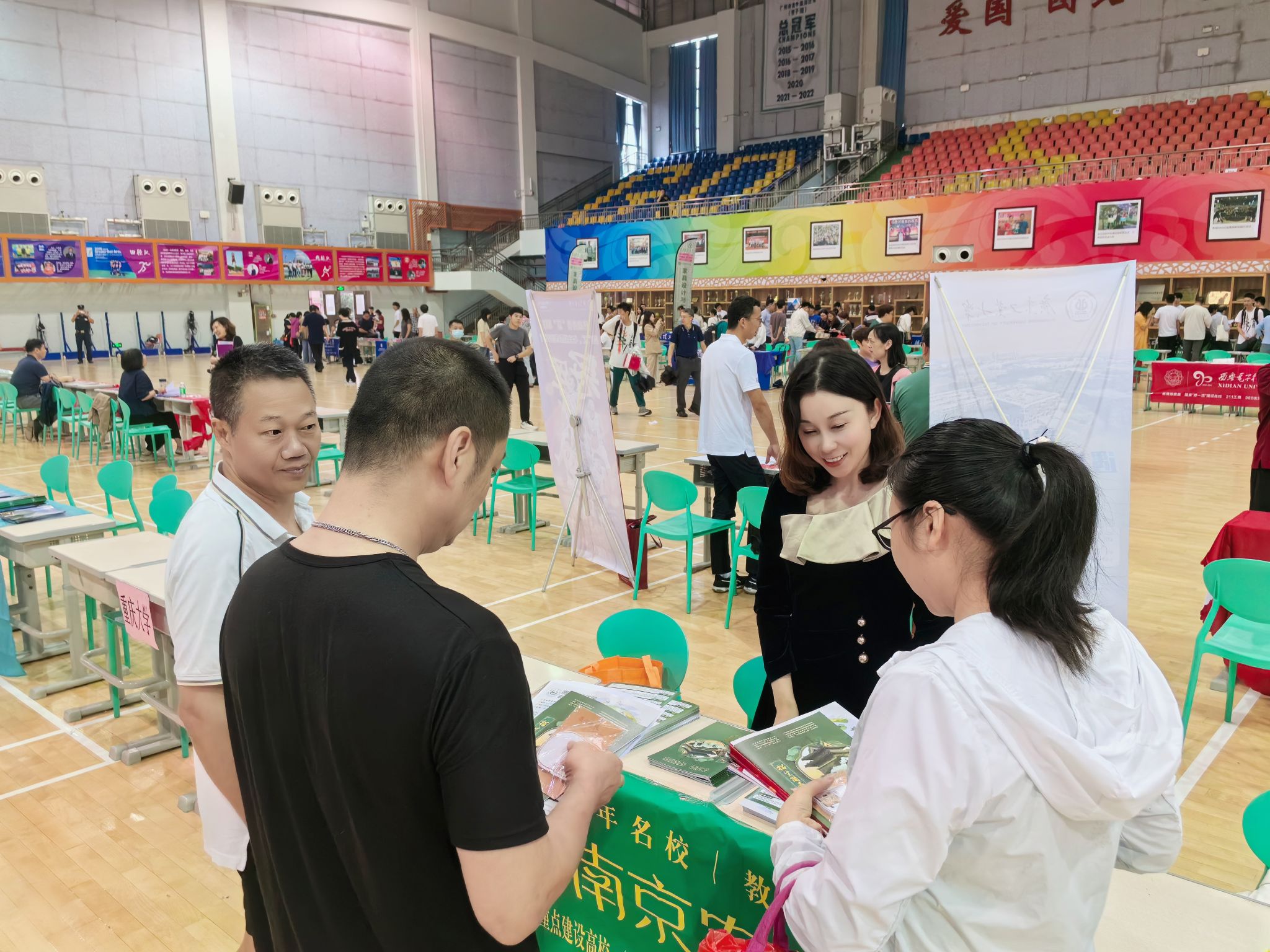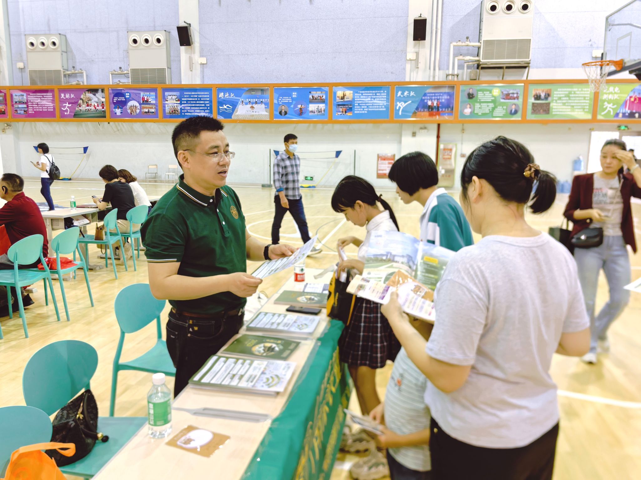 在广东实验中学体育馆,成人动漫 社会合作处副处长肖茂华教授、成人动漫 思政教育主管张嫦娥面向广东实验中学家长和师生做招生宣传,介绍了学校办学历史、校园环境、人才培养、学科特色及历年录取情况等。