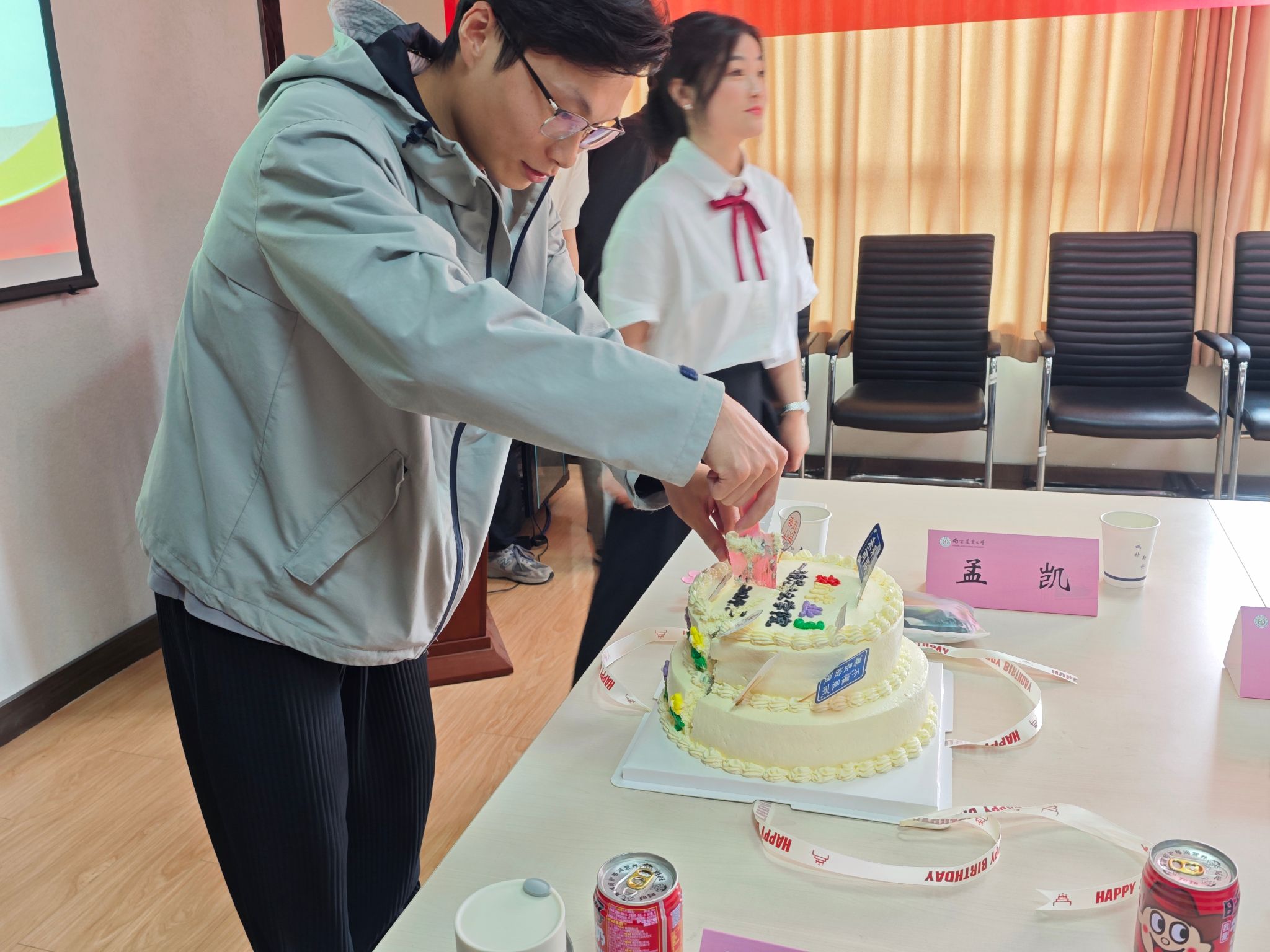 鹏北海,凤朝阳,又携书剑路茫茫。交流后,毕业生与学院领导、导师、行政老师及教学秘书在303会议室进行了合影留念,在不舍而又温馨的氛围中分享了毕业蛋糕。
