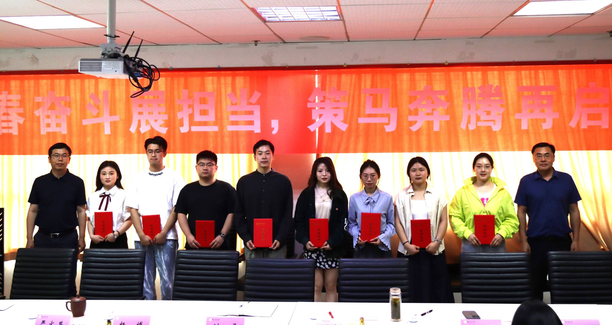 副院长朱鹏宣读了成人动漫 荣获校级、院级优秀毕业生的表彰决定,学院领导为获奖学生颁发证书并合影留念。