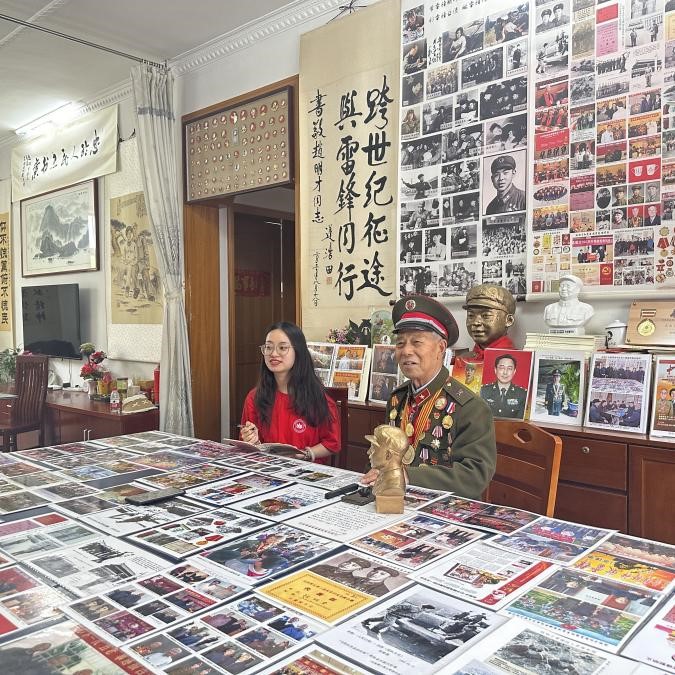 团队成员前往雷锋生前战友赵明才老同志的家,问候并采访了老前辈。老前辈向团队成员们生动讲述了自己与雷锋同志的革命作战经历、终身践行雷锋精神的行动与感悟以及新时代给予青年一代的殷切寄语,同学们倍受鼓舞。通过与前辈的交流,团队成员对革命文化和革命精神的传承产生了更为深刻的理解。