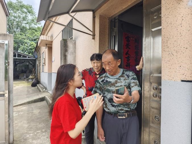 在芝山村工作人员的带领下,团队成员深入村内农户进行入户问卷调查,调研了8户农户,为农户讲解乡村文化振兴的相关政策。团队成员和农户们积极讨论,现场氛围和谐融洽。