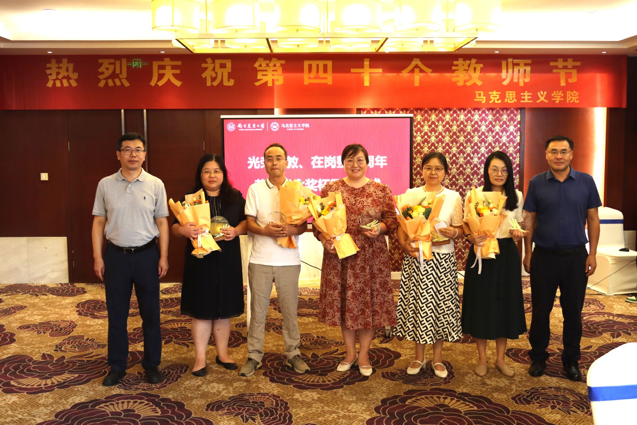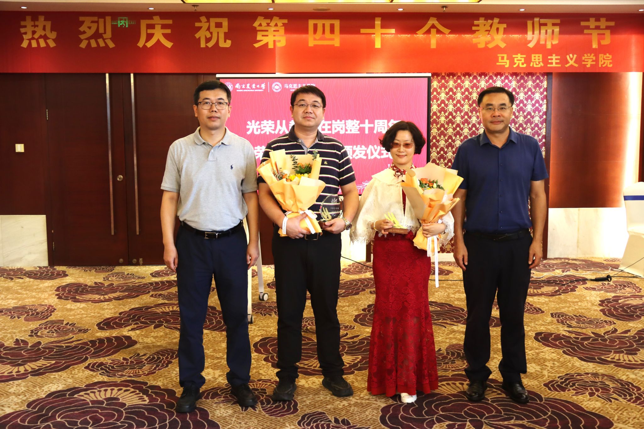 刘勇和付坚强为“光荣从教、光荣在岗整十周年”的教师颁发纪念杯。教师们表示,教师之路是光荣之路,在立德树人的路上,做到了初心不改,砥砺前行,同时还分享了各自在从教道路上一点一滴感动和难忘的时光。