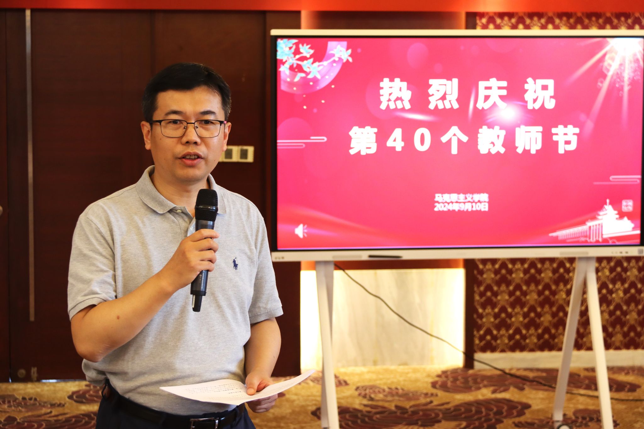 9月10日,成人动漫 在翰苑宾馆三楼紫金厅举行第四十个教师节庆祝活动。学院党委书记刘勇、院长付坚强、全体教职工参加活动。活动由刘勇主持。