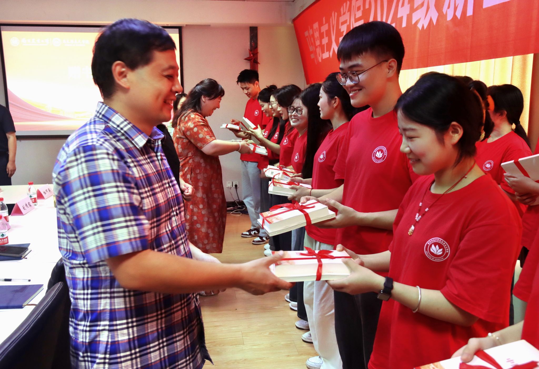 导师为新生赠送书籍《中国共产党简史》《深入学习习近平关于教育的重要论述》,希望同学们多读书,多读经典,努力提高理论水平和学术能力。