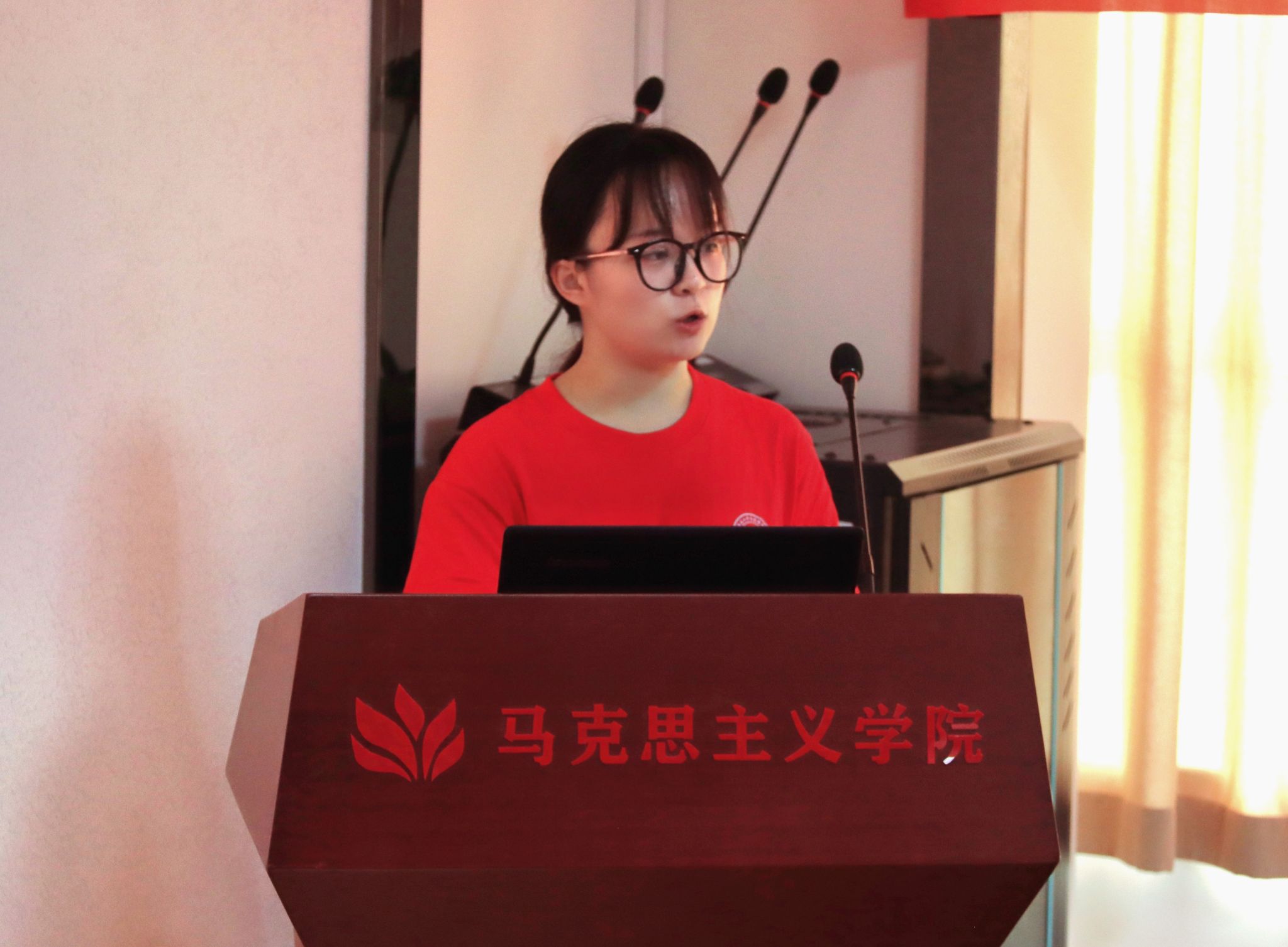 老生代表康佳发言。她分享了自己的学习、工作和实践经验,期待和学弟学妹们一起畅游科研、积极实践、团结并进,为乡村振兴,强国建设奉献青春力量。