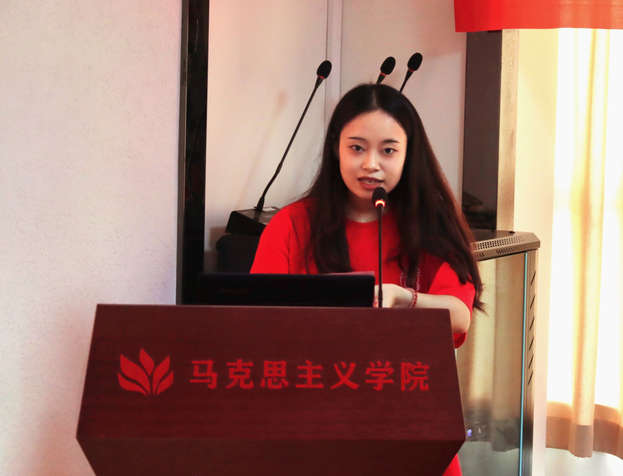 新生代表李珊珊发言。她表示要充分利用好学校提供的学习条件,勤奋学习,探究真理,将自己锻炼成为高层次、高素质的人才,书写人生路上一幕新的篇章。