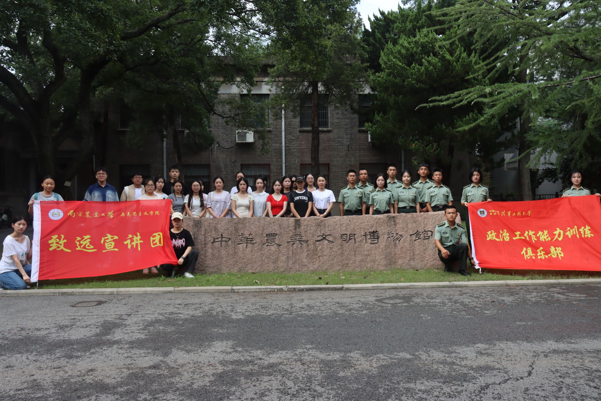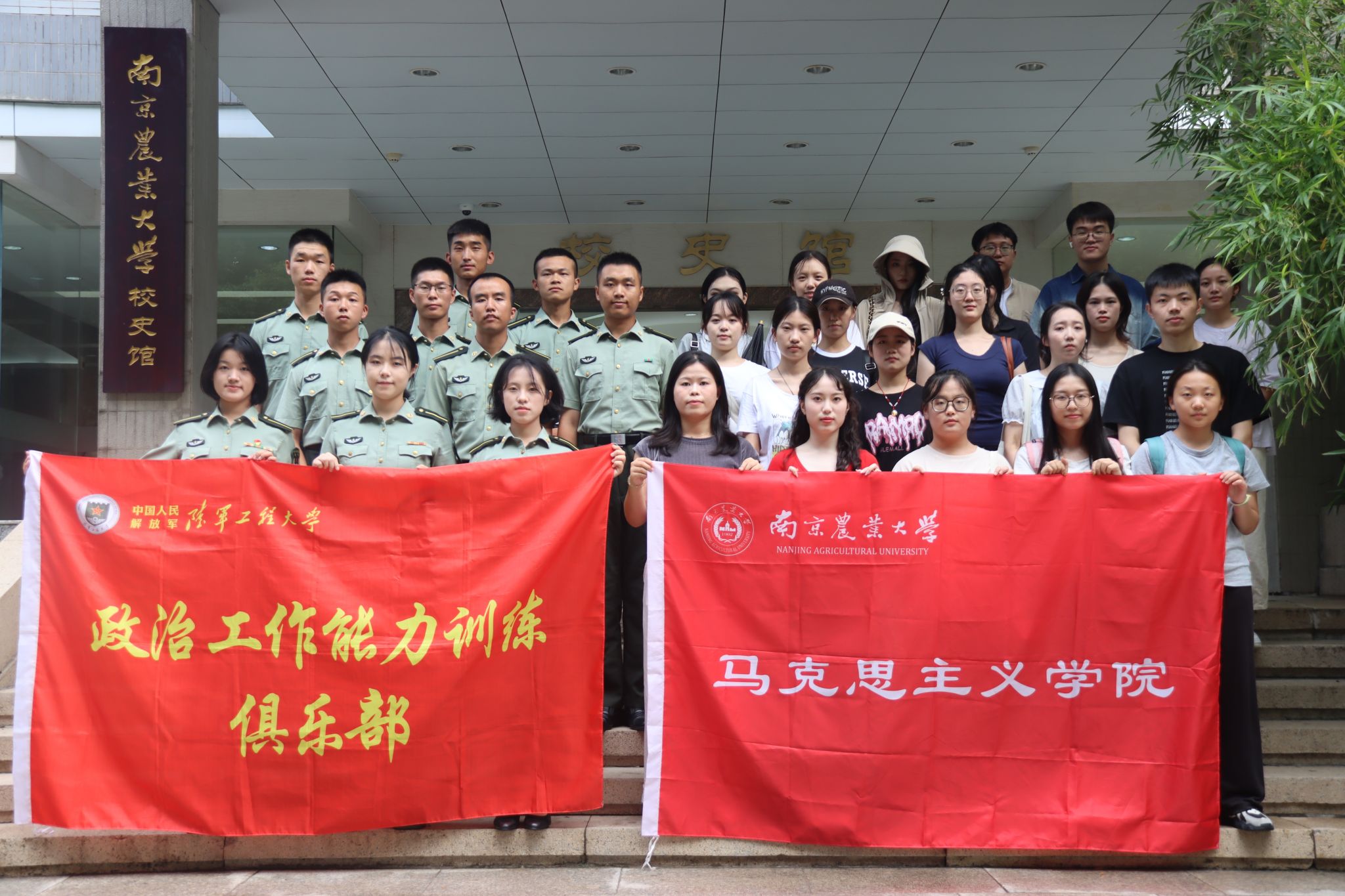 新生在与野战工程学院学员一同参观中感受到南农校史的丰富历史积淀以及中国农业文化的智慧力量,也在参观对方高校的过程中体会了军队的高度自律精神,激发了勤奋坚韧的意志力。