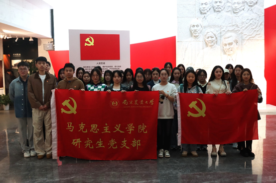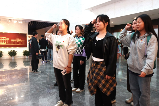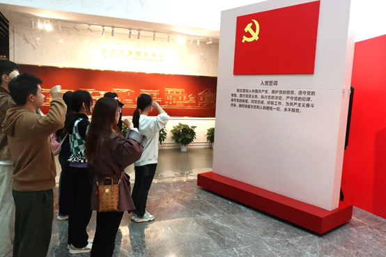 梅园新村纪念馆由中共代表团办事处旧址、国共南京谈判史料陈列馆、周恩来图书馆等组成,承载着中国共产党和中国人民的奋斗历程和革命精神。参观前,研究生党支部书记余国香带领支部党员在纪念馆的宣誓词前,庄严地举起了右手,重温入党誓词。“我志愿加入中国共产党,拥护党的纲领,遵守党的章程,履行党员义务……”铿锵有力的誓言在纪念馆内回荡,表达了每一位党员对党的忠诚和对革命事业的坚定信念。