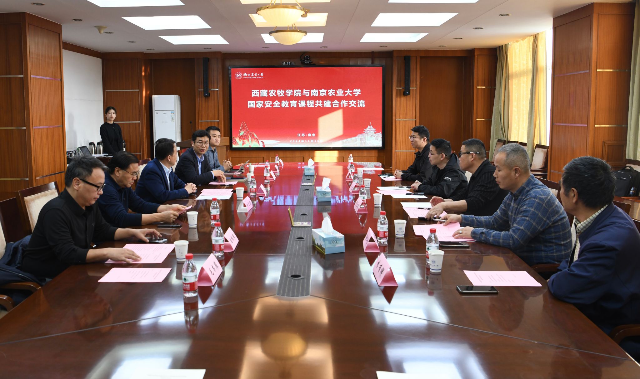 吴群表示,希望通过程合作共建,深挖具有地域和学校特色的教育资源,打造国家安全教育精品课程,拓展对口支援新模式,形成通识教育新成效,丰富立德树人新内涵。邢震认为,西藏是国家安全和生态安全屏障,学校对国家安全教育课程高度重视,积累了优质素材和典型案例,将为两校学生的国家安全意识与能力培养提供新的实践形式。签约仪式结束后,两校教师讨论了合作共建的实施方案。