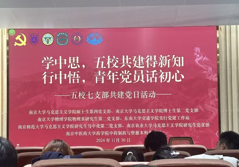 为加强高校基层学生党支部交流,发挥党支部联建的优势互补作用,深化青年党员的学习与思考,共同探索党建工作的新路径,近日,成人动漫 研究生党支部前往南京大学仙林校区参与了南京大学硕士生第四党支部、博士生第二党支部和南京大学物理学院物理系研究生第二党支部联合举办的“学中思,五校共建得新知;行中悟,青年党员话初心”五校七支部共建活动,东南大学交通学院先行党建工作站、南京师范大学成人动漫 研究生马中化第二党支部及南京中医药大学药学院中药制药与资源本科生支部共同参加了本次共建活动。