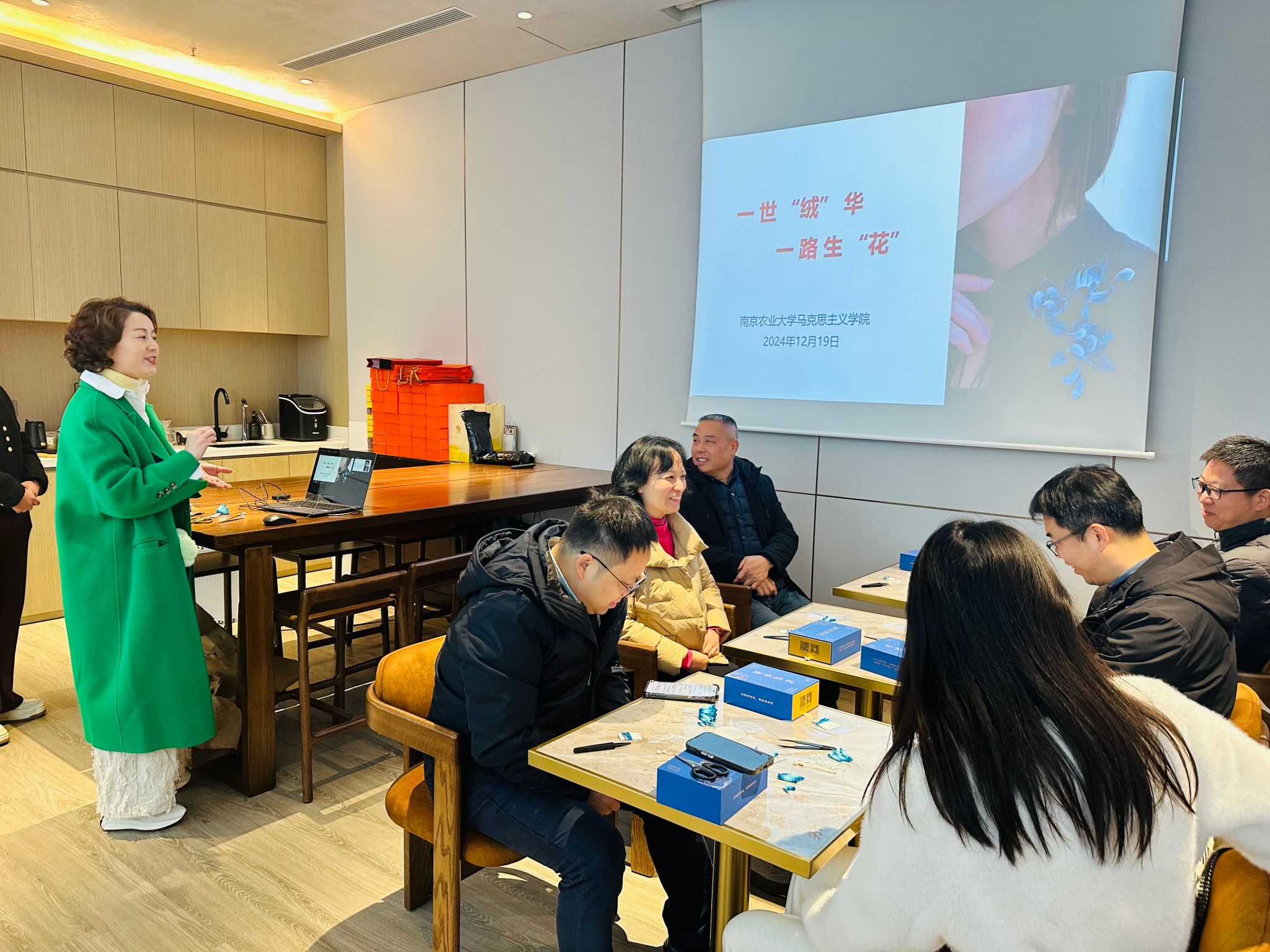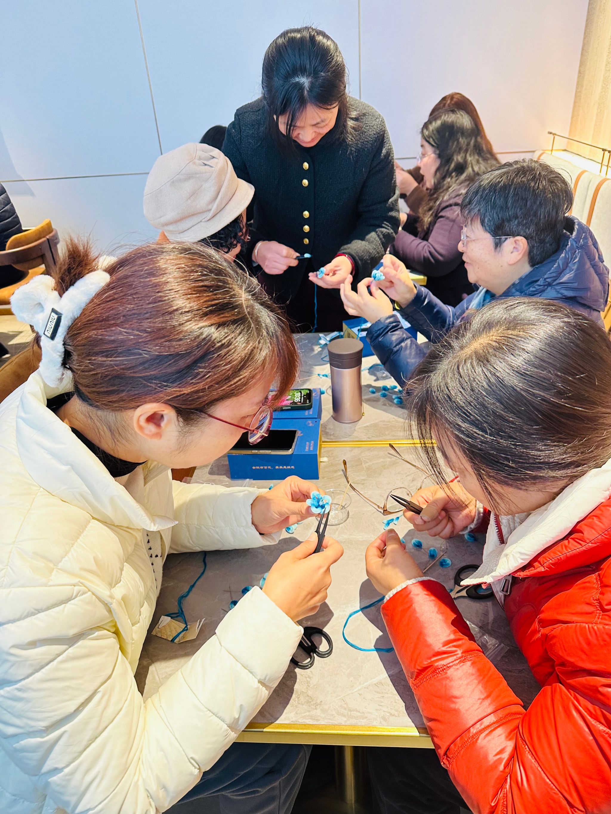 12月19日上午10:00,成人动漫 工会在翰苑大堂吧成功组织了一场别开生面的非遗绒花制作活动,吸引了众多学院教职工的积极参与。