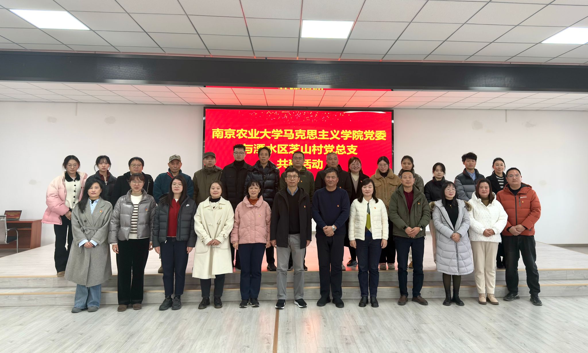 2024年12月17日, 成人动漫 党员师生在党委书记刘勇的带领下,一同前往南京市溧水区芝山村开展共建调研。