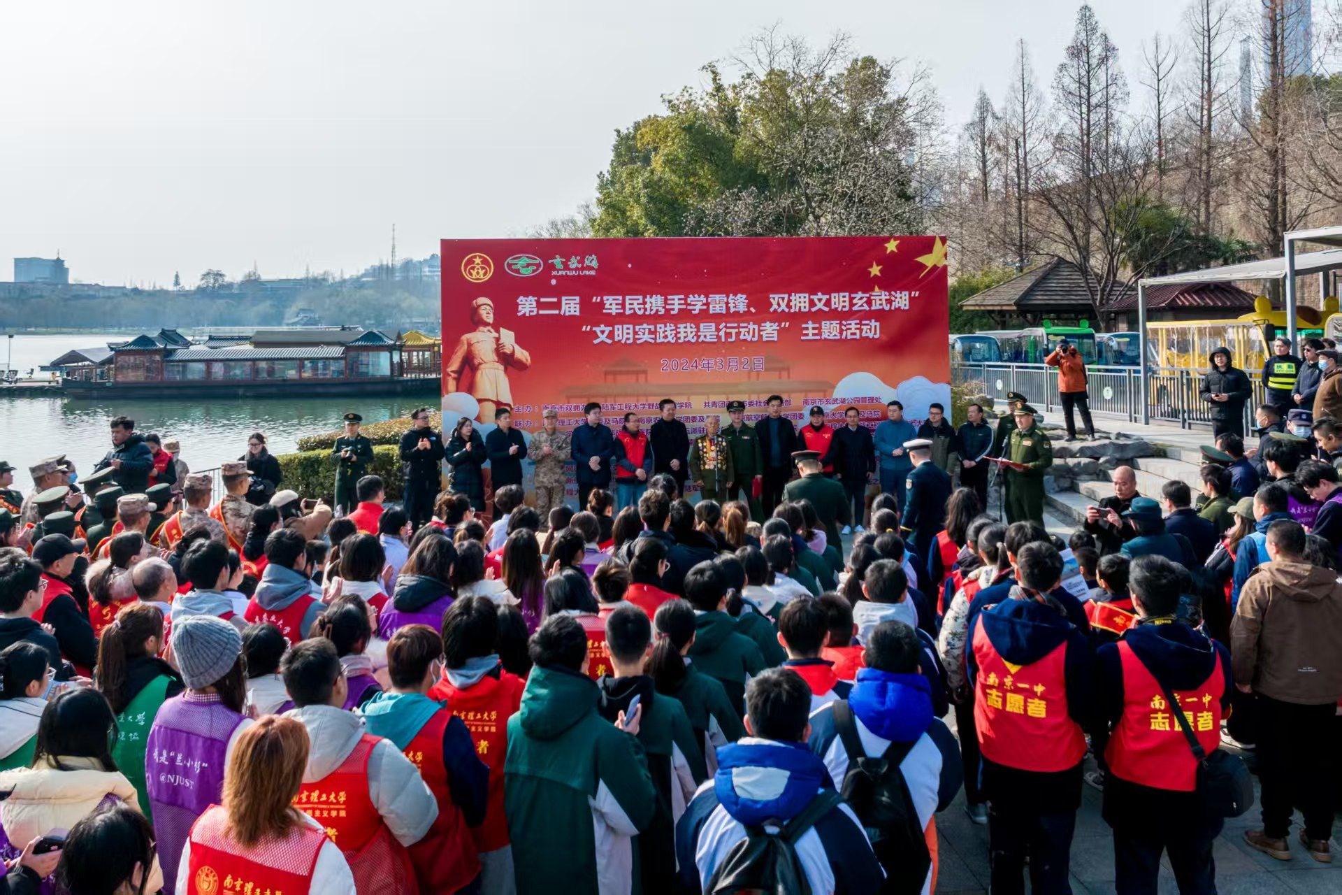 此次活动由南京市双拥办、陆军工程大学野战工程学院、南京警备区政治工作处、共青团南京市委社会联络部和玄武湖公园管理处联合主办,来自陆军工程大学、国防科技大学第六十三研究所等部队的20余个单位和组织,南京航空航天大学、成人动漫 等26所大中小学,以及省人力资源和社会保障厅等33个地方单位和组织,共80余个单位和组织的470余人参加。