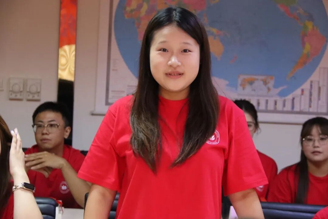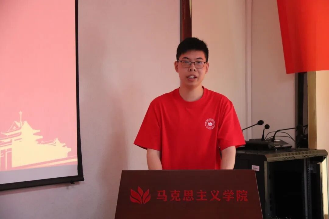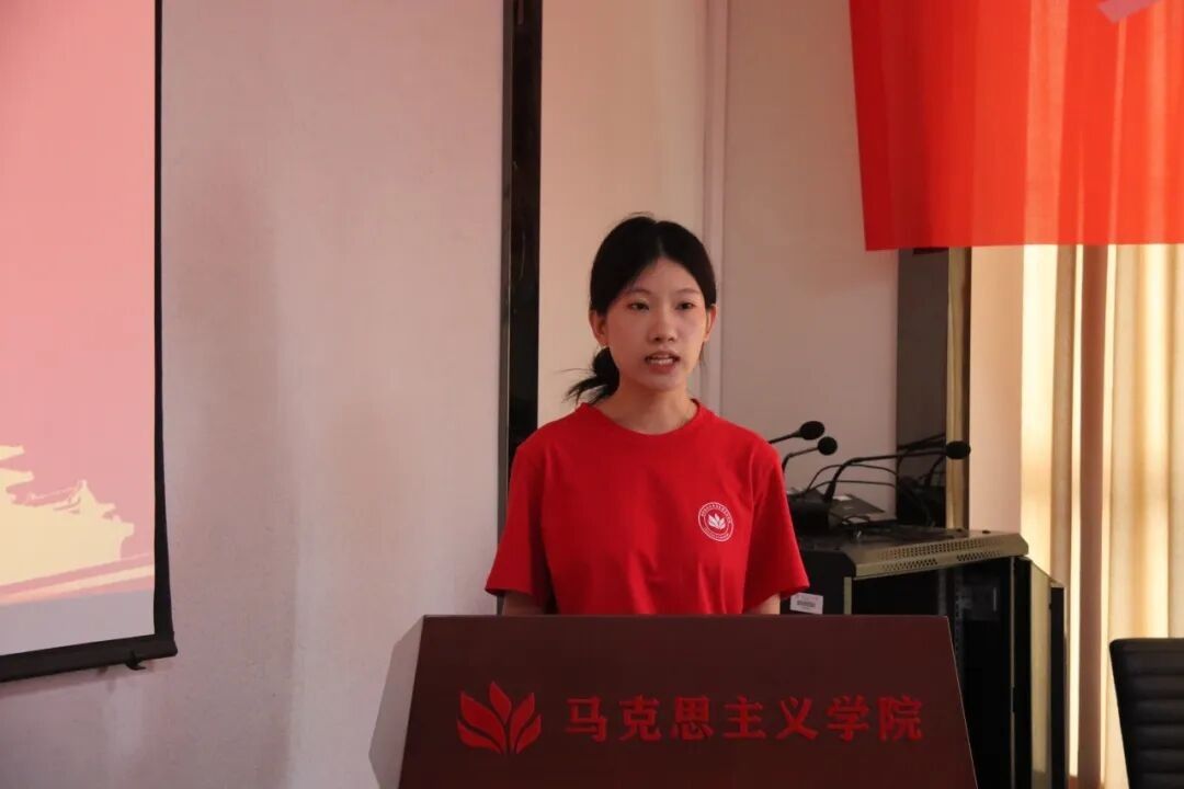 老生代表潘梦盈发言。她分享了自己一年来的学习、工作和实践经验,鼓励新生在求真笃行中锤炼本领,在团结协作中砥砺前行,将个人奋斗融入乡村振兴和民族复兴的伟大事业。新生代表查尔斯希望在学院引领下,互帮互学,共同进步,以饱满的热情、昂扬的斗志,投身到马克思主义理论研究的海洋中。