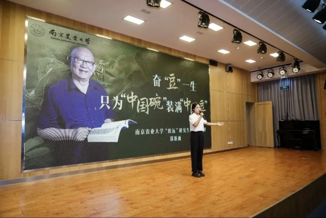 郑斯薇深情讲述了盖钧镒院士数十年来躬耕田野、潜心科研的奋斗历程,彰显了胸怀祖国、服务人民的科学家精神,突出展现了南农人将论文写在祖国大地上的坚定信念,并从“农业强国、青年何为”的时代命题出发,呈现了新一代南农青年从理论的“接收者”向实践的“传播者”“践行者”转变的生动过程。宣讲主题鲜明、内容真实、情感真挚,充分体现了宣讲团成员扎实的专业素养和真挚的为农情怀,有效激发了青年学子投身乡村振兴、强国建设的使命感和责任感。