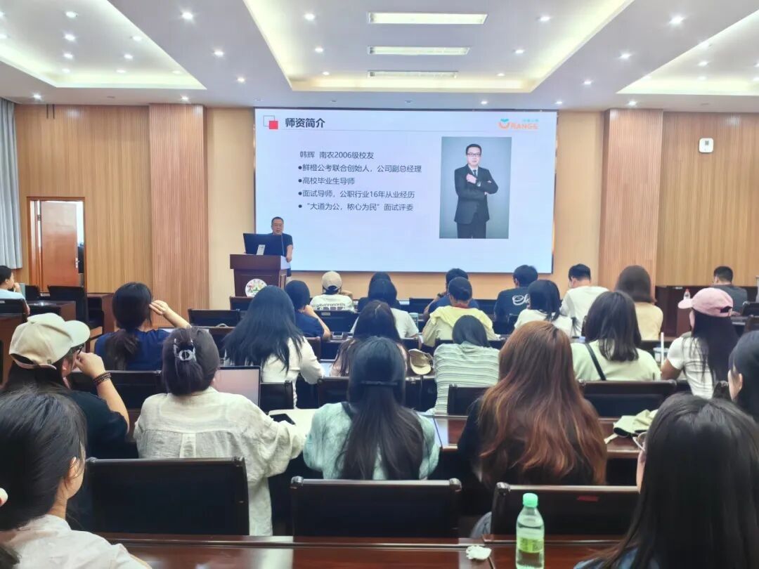 2025年10月10日下午,学院与外国语学院联合举办“系统性思维准备考编”讲座,特邀成人动漫 2006级校友、鲜橙教育联合创始人韩辉老师,为研究生们开启考公智慧之门。