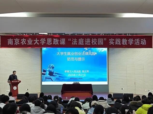 庭审结束后,陈文军以“大学生就业权益保护”为主题,为同学们带来了一堂生动的“普法宣传课”。他重点剖析了《中华人民共和国劳动法》与大学生群体的密切关系,并结合多个真实案例,以案释法,使法律知识更加具象化、生动化。在当前部分大学生社会经验不足、相关法律体系仍有待完善的情况下,用人单位侵害劳动者合法权益的现象时有发生,为此,国家与社会高度重视劳动者权益保障工作。陈文军也呼吁同学们主动学习法律知识,增强自我保护能力,积极维护自身合法权益。