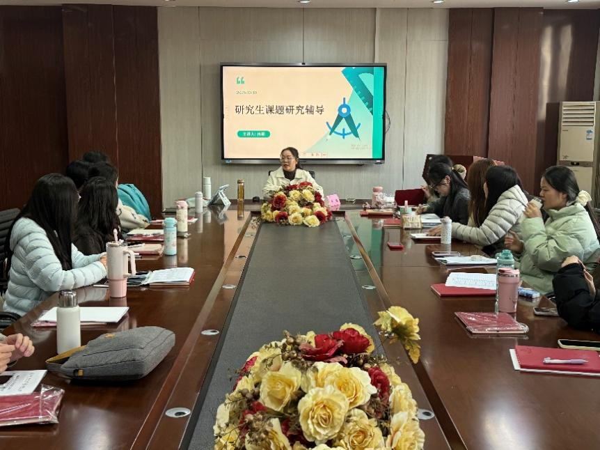 冉璐老师为学生作研究生课题研究辅导专题培训。以学院研究生科研创新项目推进为契机,她系统讲解了课题申报书撰写要领、研究启动与文献梳理、研究设计及方法选择、课题结项流程以及常见问题应对策略等五个关键部分,并结合学生实际课题案例进行剖析,帮助同学们对研究生课题研究建立清晰认识,为后续科研工作奠定扎实基础。