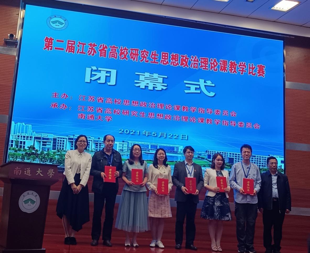 5月21日至22日,由江苏省高校思想政治理论课教学指导委员会主办,江苏省高校研究生思想政治理论课教学指导委员会、南通大学承办的第二届江苏省高校研究生思想政治理论课教学比赛在南通大学举行,来自南京大学、东南大学、南京师范大学、河海大学、苏州大学和我校等全省三十所高校的四十四名研究生思想政治理论课教师参赛。我校由成人动漫 副院长姜萍带队参赛,参赛教师是成人动漫 研究生思政课教研室的石诚老师。
