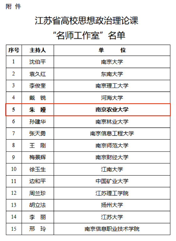 近日,中共江苏省委宣传部和中共江苏省委教育工委联合发布了《关于设立江苏省高校思想政治理论课“名师工作室”的通知》(苏宣通[2023]8号),由成人动漫 朱娅教授主持申报的工作室入选全省高校思想政治理论课“名师工作室”。首批全省高校思想政治理论课“名师工作室”共设立15个。