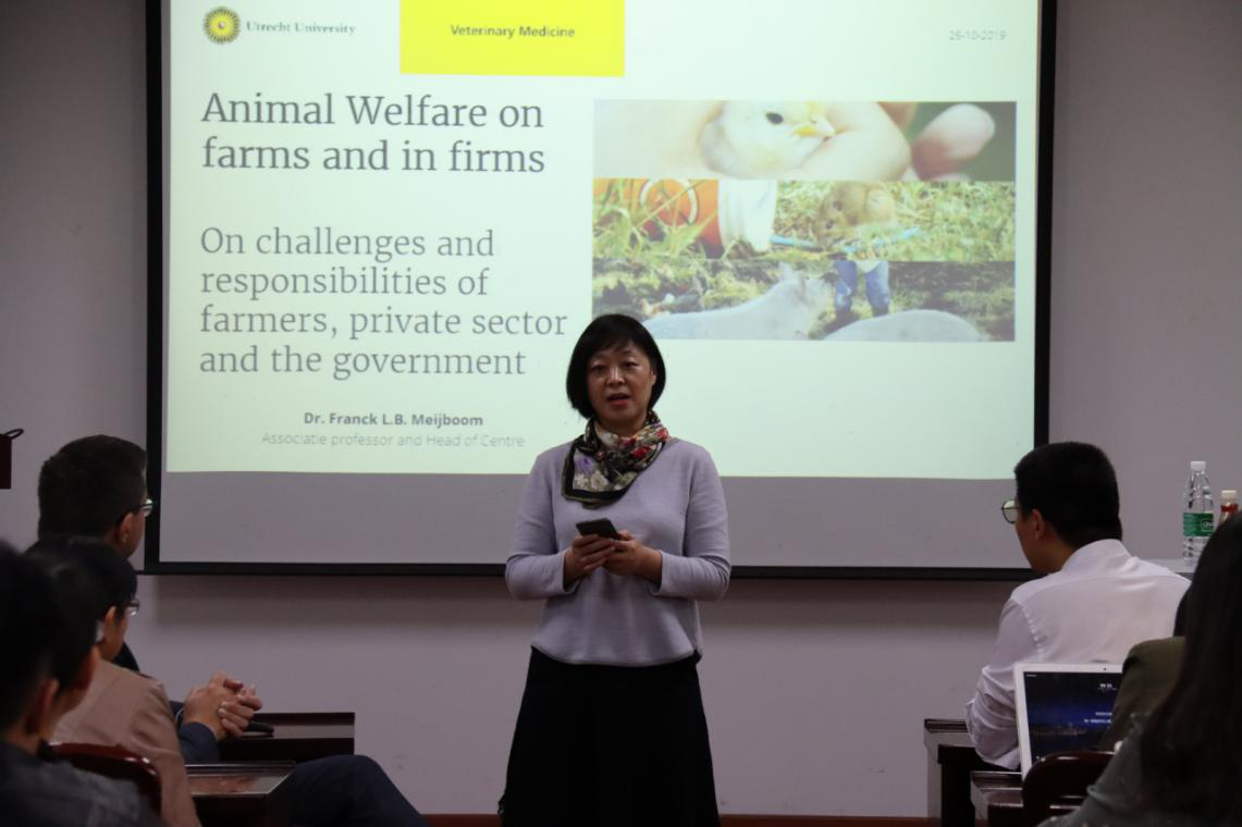 成人动漫 海外名家系讲座第四场于10月25日(周五)上午9:30在逸夫楼动物医学院报告厅举行。来自荷兰乌德勒支大学的Franck L.B. Meijboom博士带来了题为《Animal Welfare on farms and in firms》的精彩报告。报告由动物医学院博士生导师,动物医学院基础兽医学国家重点学科负责人,农业部动物生理生化实验室主任赵茹茜教授主持。参加讲座的有动物医学院、人文与发展学院以及成人动漫 的师生等。