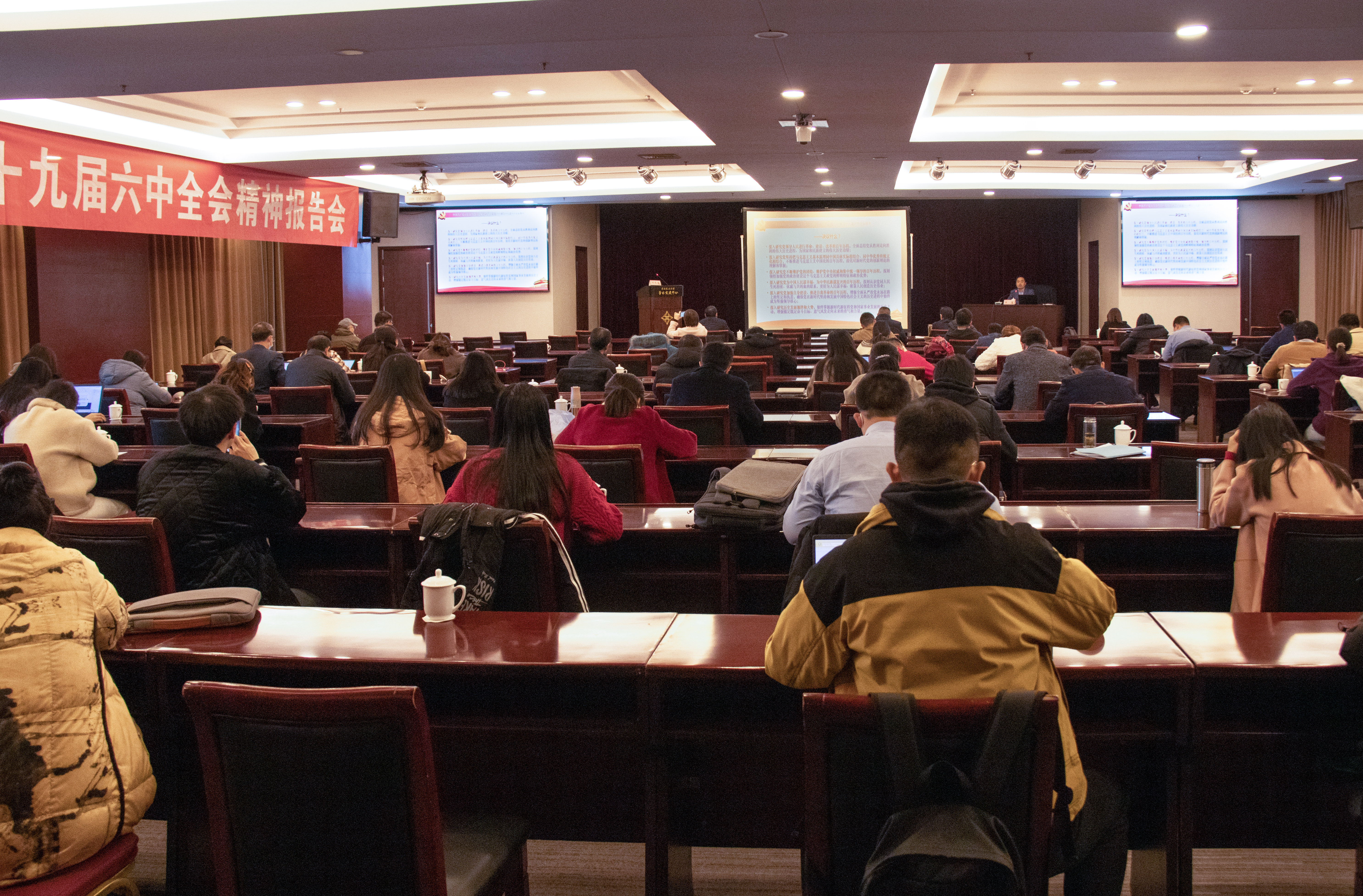 王智从为何决议、决议什么和如何决议切入,对党的十九届六中全会的重要意义和《中共中央关于党的百年奋斗重大成就和历史经验的决议》的历史地位和丰富内涵进行了阐释。他对《决议》的主要内容进行了梳理和提炼,通过图文对比和案例,展现1921年到2021年中国共产党从“极其简陋”到“极其盛大”的过程,体现中国共产党为了繁华之地中的年轻人的幸福生活而努力奋斗的过程。同时,重点讲解了中国特色社会主义新时代的历史性成就和历史性变革,阐述了党的百年奋斗的历史意义和历史经验。他强调,要重点把握新时代坚持和发展什么样的中国特色社会主义、怎样坚持和发展中国特色社会主义,建设什么样的社会主义现代化强国、怎样建设社会主义现代化强国,建设什么样的长期执政的马克思主义政党、怎样建设长期执政的马克思主义政党等重大时代课题。